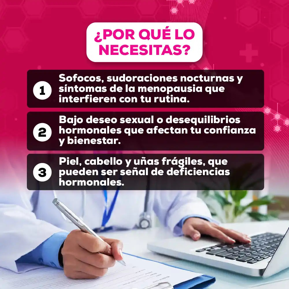 Es un suplemento natural diseñado para ayudar a regular el sistema hormonal femenino, aliviar síntomas del ciclo menstrual y de la menopausia como sofocos, cambios de humor, fatiga, hinchazón y baja libido.