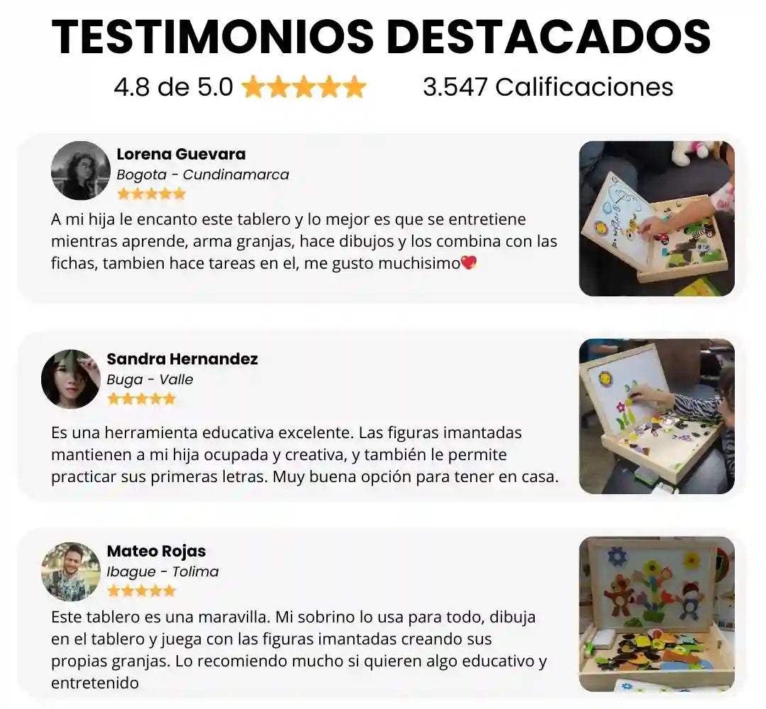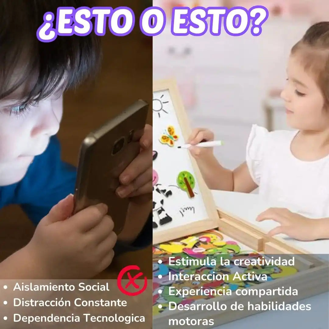 Sí, nuestro tablero didáctico 2 en 1 está fabricado con materiales no tóxicos y seguros para niños. Los bordes son suaves y el diseño está pensado para evitar cualquier riesgo, brindando tranquilidad a los padres mientras sus hijos aprenden y juegan.